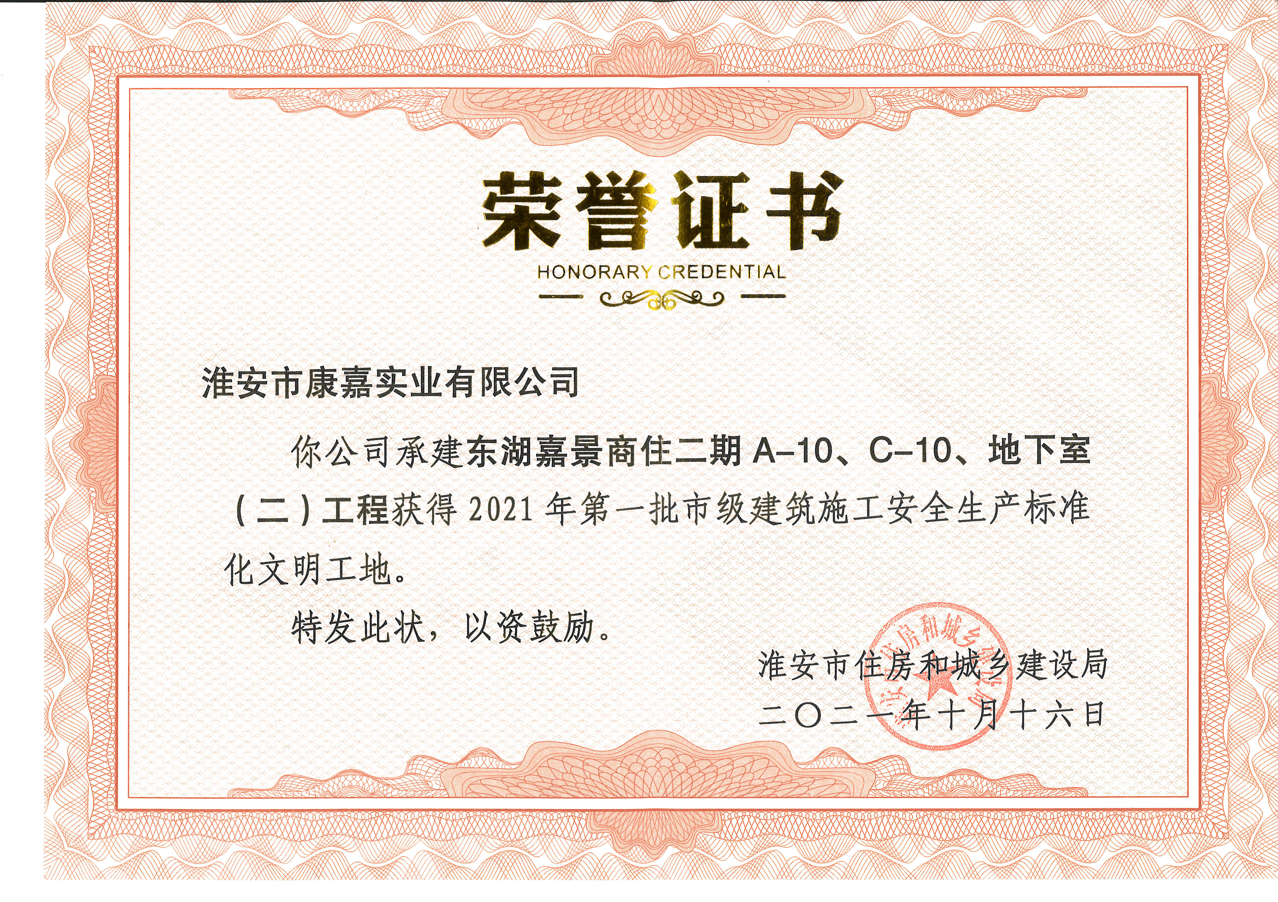 詳細(xì)介紹:近日,2021年淮安市第一批市級(jí)建筑施工安全生產(chǎn)標(biāo)準(zhǔn)化文明工地項(xiàng)目名單揭曉,康嘉實(shí)業(yè)公司承建的淮安市大同路小學(xué)及東湖嘉景商住二期A-10、C-10、地下室(二)工程兩個(gè)項(xiàng)目榮獲市級(jí)標(biāo)化工地稱(chēng)號(hào)。 項(xiàng)目開(kāi)工伊始,兩個(gè)項(xiàng)目部便將獲得標(biāo)準(zhǔn)化工地作為安全文明總目標(biāo),根據(jù)省市級(jí)安全文明工地實(shí)施標(biāo)準(zhǔn),制定詳細(xì)的實(shí)施方案,建立以項(xiàng)目部為核心的創(chuàng)建管理體系。在文明標(biāo)化工地...