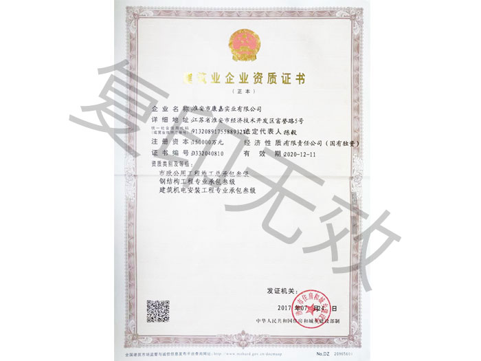 康嘉實業(yè) >> 首頁 >> 走進康嘉 >> 資質(zhì)證書
